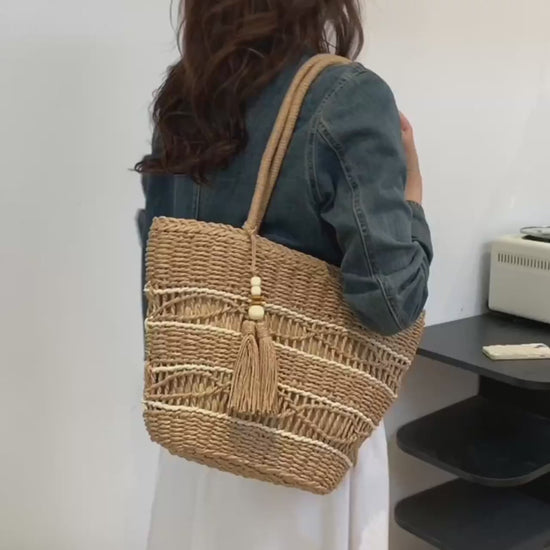 Handwoven Grass Beach bag with Tassels and shoulder strap for women