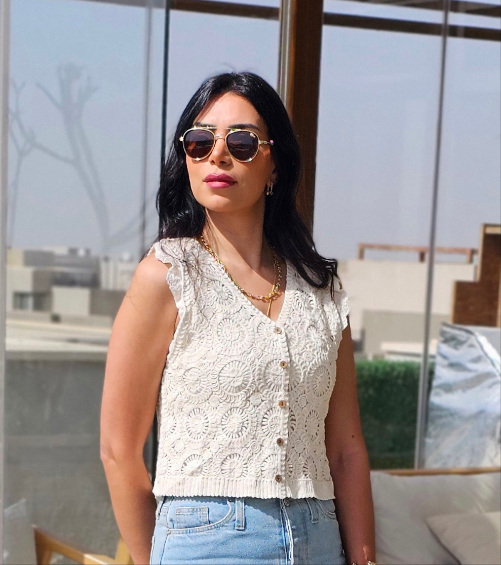 Handcrafted with intricate crochet detailing, this lightweight vest features a flattering V-neckline, wooden button closure, and a relaxed fit that's perfect for layering.