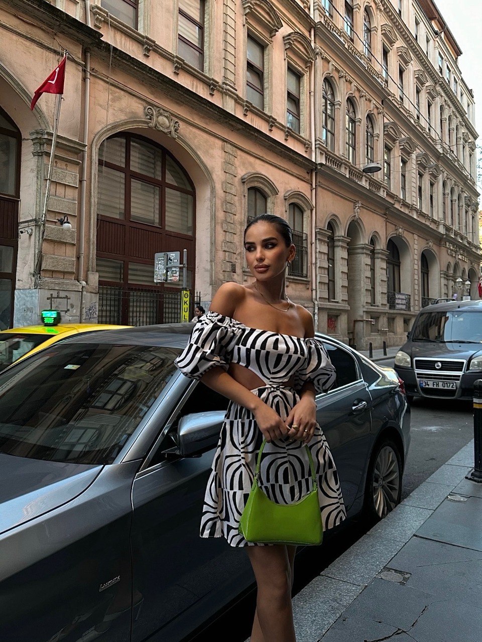 MONOCHROME CUT OUT PUFF SLEEVE DRESS (Made in Turkey 🇹🇷)